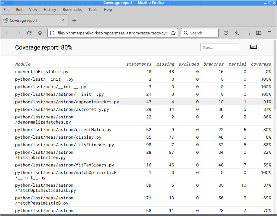 Coverage HTML summary page. This is the index.html page produced from running scons on the meas_astrom package. Click on a file to get a summary of that file.¶